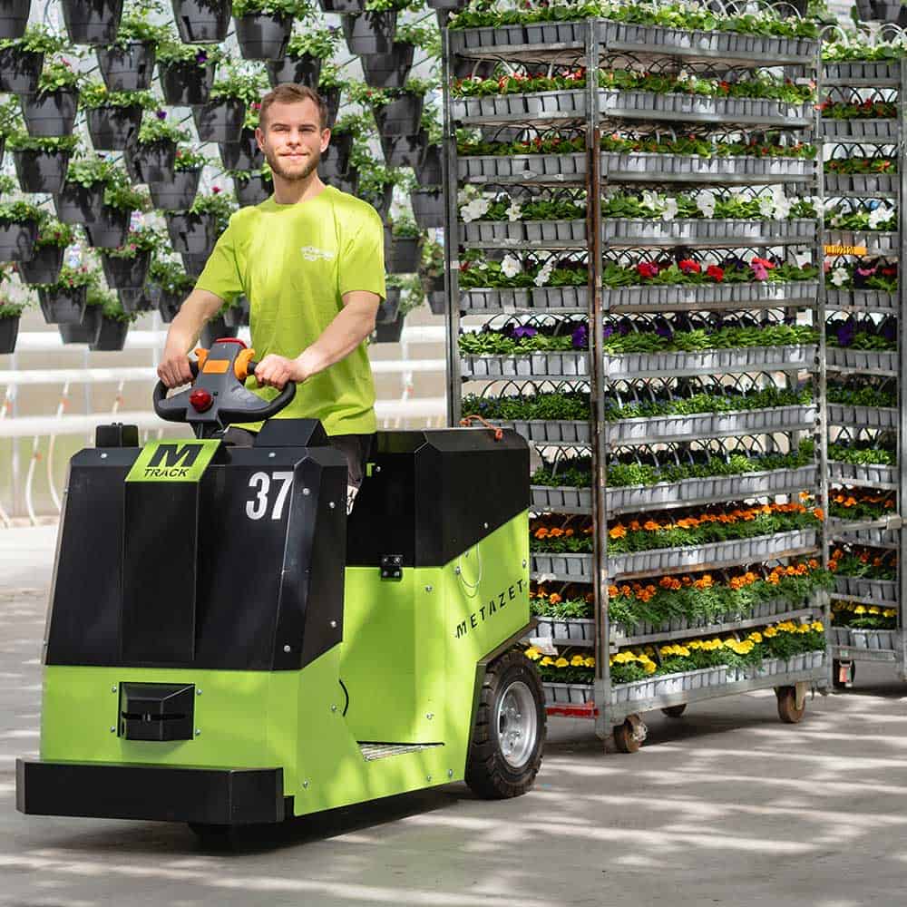 Duurzaam en robuust: Met een stevige constructie en massieve banden is de M-Track ontworpen voor langdurig gebruik, zelfs onder intensieve omstandigheden in kassen.